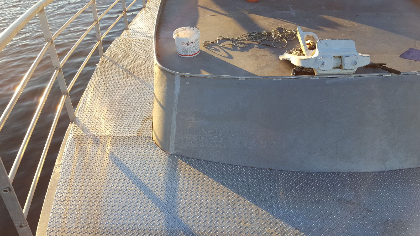 På grunn av lekkasje i dekket er det på tide å legge på aluminium. Underlaget er Iroko tre og er helt perfekt å legge aluminium på.
